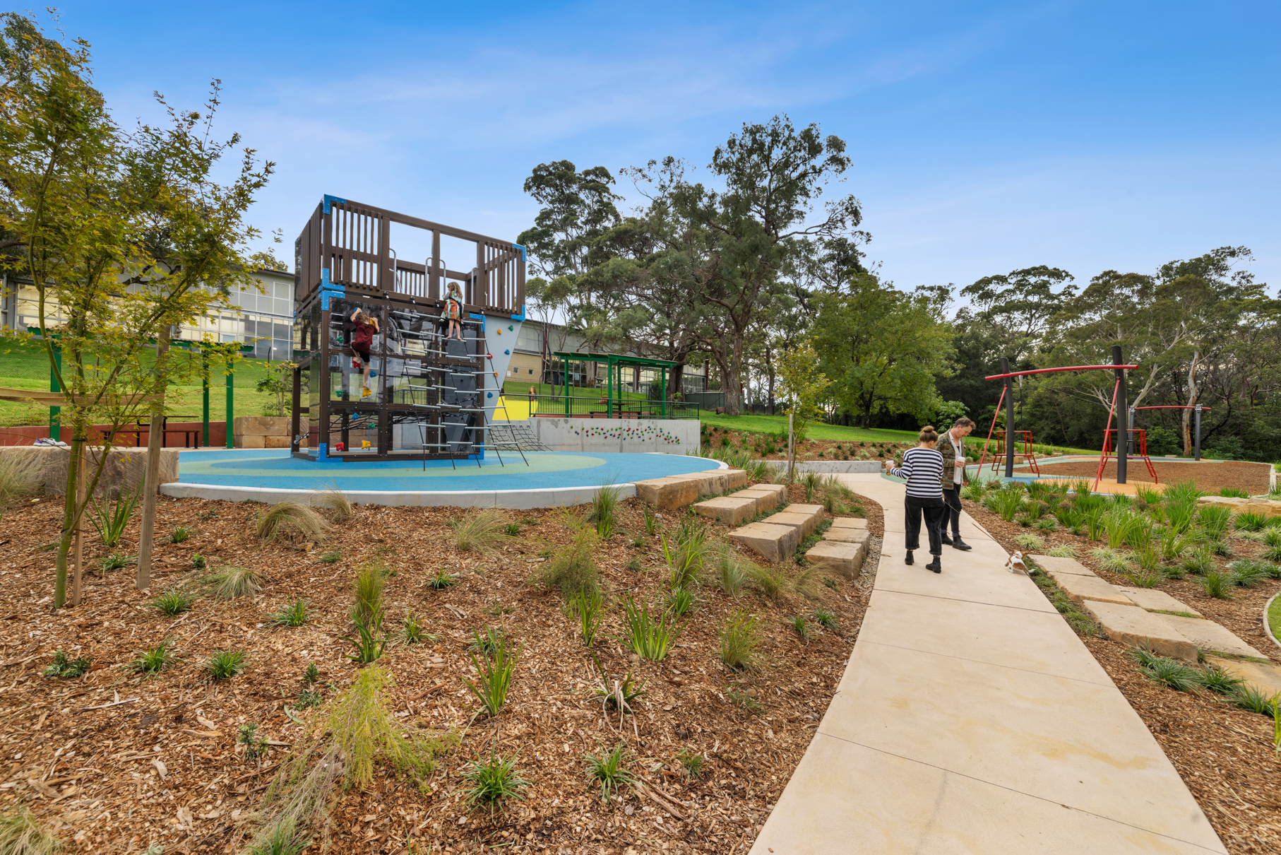 Our landscaping playground services include the installation of play equipment, concrete paths, sandstone retaining walls, shelters, and street furniture. We tailor each design to suit the site's natural features and user demographics, ensuring accessibility and long-term performance.